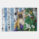 Ein Dryad, der einen braunen französischen Bulldog in einem Wald von Birkenbäumen hält.
