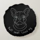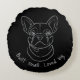 French Bulldog Line Art. Built Small. Loved Big. Rundes Kissen