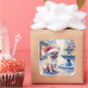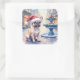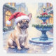 French Bulldog Snowy Town Fountain Santa Christmas Quadratischer Aufkleber