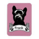 Stift eines französischen Bulldoggen mit Banner, um mit Namen oder anderem Text zu personalisieren. Schwarz und Weiß. Anpassen der Hintergrundfarbe.