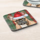 Fun coaster set for the person who loves their Frenchie dog. This one wears a Santa hat for a stylish approach to the holiday season, and sits cutely against a festive red and green plaid background to decorate your home or office with seasonal pet lover joy.