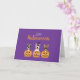 Illustration von drei französischen Bulldog Welpen in verschiedenen Farben in Kürbissen, die in Halloween-Kleidung gekleidet sind.
