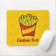 Cartoon-Abbildung von kleinen Pommes Pommes frites auf gelben Junk Food nahtlos Hintergrund. Eigener Text.