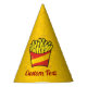 Cartoon Illustration von kleinen Pommes frites. Junk Food Kontur Icons Gelbe Muster Hintergrund. Eigener Text.