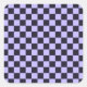 A checkerboard pattern with alternating lavender and black squares fills the image. The repeating geometric design gives a balanced and rhythmic appearance.