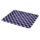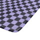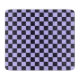 A checkerboard pattern with alternating lavender and black squares fills the image. The repeating geometric design gives a balanced and rhythmic appearance.
