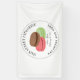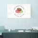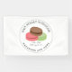 Circle Logo mit Schokolade, Rosa und grünen Makaronen mit eigenem Text für Firmenname, Adresse und Tagline mit grauem Rand.