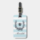 Maßgeschneiderte Gepäckmarke: Antiquitätensymbol aus der Illustration des französischen Magazins mit Laurel-Wraath-Image/blau und weiß gestreiftes grafisches Hintergrundbild/Hübsche Kalligraphiebezeichnung Personalisierung
