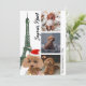 Dieses hübsche Weihnachtskartenteam mit französischem Poodle-Motiv besticht durch seine grafische Gestaltung des Eiffelturms und das hübsche Poodle mit einer Weihnachtsmannmütze. Der vorgestellte Gruß ist "Joyeux Weihnachten". Diese Urlaubsgrußkarte kann einfach mit drei Fotos, einem Namen und einem Jahr sowie mit jedem anderen Text, den Sie aufnehmen möchten, personalisiert werden.