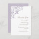 Chic und elegante französische Regie lila Lilie Muster Hochzeitseinladung Design. Detaillierte Lilie Eckmuster in der Wisteria lila. Passen Sie Ihre Namen und Ihre Hochzeitsinformationen in dunklen Taupe Buchstaben an. Entworfen, um unsere französische Regency Lila Lilie Wedding Collection zu entsprechen.