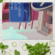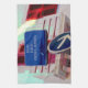 Das kühne, farbenfrohe Kunstwerk dieses Küchentüchers ist ein Originalfoto von ZoeSPEAK, das an einer Straßenecke in Biarritz, Frankreich, aufgenommen wurde. Das blaue Schild mit weißen Buchstaben, "Rue des Goelands", ist der Straßenname (in englischer Sprache "Sea Gull Street"). Das runde, marineblaue Schild mit einem weißen Pfeil ist ein Richtungszeichen. Der rote Kreis mit einem Backslash auf einem dunkelblauen Hintergrund gibt "Nicht eintreten" an. Hinter den Schildern befindet sich ein weißes Gebäude mit dunkelrotem Zierwerk, ein Beispiel für die baskische Architektur. Ein Sonnenschein in einer Ecke des Hauses hebt das Rot der Fensterläden hervor.