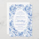 French Toile de Jouy Blue Roses Elegant Wedding Einladung