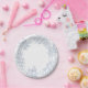 Ein sanftes blaues Toile de Jouy Design mit Blumenelementen.