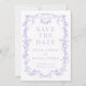 French Victorian wedding save the date featuring elegant purple lilac tones and vintage inspired detailing. Designed for classic, romantic, and antique style weddings with a refined European aesthetic. Perfect for formal ceremonies, garden weddings, and vintage themed celebrations, offering a timeless way to announce your wedding date while coordinating with a cohesive stationery suite.