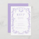 French Victorian wedding RSVP card featuring elegant purple lilac tones and vintage inspired detailing. Designed for classic, romantic, and antique style weddings with a refined European feel. Perfect for formal ceremonies, garden weddings, and vintage themed celebrations. Offers a timeless way for guests to respond while complementing a cohesive wedding stationery suite.