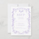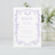 French Victorian wedding RSVP card featuring elegant purple lilac tones and vintage inspired detailing. Designed for classic, romantic, and antique style weddings with a refined European feel. Perfect for formal ceremonies, garden weddings, and vintage themed celebrations. Offers a timeless way for guests to respond while complementing a cohesive wedding stationery suite.