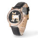 Uhr, Klassische Damenuhr mit schwarzen Lederarmband