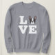 Liebe Franchies oder kennen jemanden, der tut? Dieses Sweatshirt aus französischer Liebe ist die perfekte Ergänzung zu einem Schrank für französische Bulldoggen-Liebhaber. Das Design ist mit einem niedlichen schwarz-weißen Bulldoggesicht und einem fett-weißen Schriftart ausgestattet, der zusammen LIEBE auszeichnet.