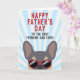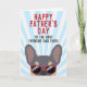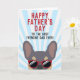 Franzosen, diese französische Bulldogge-Tageskarte wird den Tag deines Vaters machen. Das Design zeigt einen cool aussehenden lila und blassfarbenen französischen Bulldoggen mit roter Sonnenbrille mit der Aufschrift "Happy Father's Day to the best Frenchie Vater ever!", die vorne geschrieben steht. Die Innenseite der Karte lautet "To Vater, I Liebe you more than Leckereien", aber kann geändert werden, um den Wortlaut Ihrer Wahl.