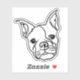 Charmanter Line Art Aufkleber mit einem spielerischen französischen Bulldog. Das minimalistische Schwarz-Weiß-Design erfasst die bezaubernden Eigenschaften der Rasse. Ideal für Hundefreunde und stilvolle Dekoration.