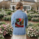 Step out in bold style with this Denim Jacket featuring Frequency Serpent. A serpentine red structure curves vertically across the fabric, marked by circular elements resembling vibrational cores, while horizontal bands of blue, green, and white flow in the background like waves of data. The interplay of intense colors and curved forms creates dynamic tension, transforming this classic denim piece into a wearable canvas of digital abstract art. Perfect for casual looks, artistic expression, or gifting to those who love fashion with energy.