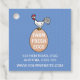 Darstellung eines Hühners, das auf einem Ei stehend ist, mit beidseitigem Text.