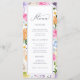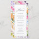 Dieses elegante Hochzeitsmenü mit individuellem Text, viel Spaß und leuchtendem Blumenhintergrund macht Ihr Party zu einem ganz besonderen Erlebnis! Ändern Sie den Text einfach, indem Sie auf die Option "Personalisieren Sie diese Vorlage" klicken.