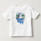 Der Berg, der eine ruhige Landschaft prägt, erhebt sich majestätisch mit seiner Reflexion, die sich im ruhigen See unter ihm spiegelt. Umgeben von üppigen grünen Bäumen und einem blauen Himmel mit einer vorübergehenden Wolke, erinnert die Szene an ein Gefühl von Ruhe und natürlicher Schönheit. Die Verwendung kühner Konturen verleiht dem Bild ein skurriles, fast kartoonisches Gefühl.