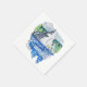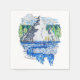 Der Berg, der eine ruhige Landschaft prägt, erhebt sich majestätisch mit seiner Reflexion, die sich im ruhigen See unter ihm spiegelt. Umgeben von üppigen grünen Bäumen und einem blauen Himmel mit einer vorübergehenden Wolke, erinnert die Szene an ein Gefühl von Ruhe und natürlicher Schönheit. Die Verwendung kühner Konturen verleiht dem Bild ein skurriles, fast kartoonisches Gefühl.