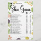 Fresh off Market Wedding Shoe Game | Unglaublich witzig Couple's Quiz für Brautparty Machen Sie sich mit unserem "Fresh Off the Market" Wedding Shoe Game bereit! Dieses unglaublich beliebte und unterhaltsame Spiel ist eine perfekte Ergänzung zu Ihrem Bauer-Markt, Garten oder rustikalem Brautparty (oder sogar dem Hochzeitsempfang!). Die Spielkarte oder das Schild ergänzt mit unseren handgezeichnet Produkten und den reizvollen Aquarellblumen wunderbar Ihre natürliche Ästhetik. Hier ist, wie das klassische Spiel gespielt wird: Das Paar sitzt von hinten, jeder hält einen seiner eigenen Schuhe und einen der Schuhe seines Partners. Ein Gastgeber liest Fragen (wie "Wer ist ein besserer Koch?", "Wer hat den ersten Schritt gemacht?", "Wer verbringt mehr Zeit für soziale Medien?"). Ohne einander zu sehen, antwortet das Paar, indem es den Schuh der Person, die die Beschreibung passt, hochhält. Es ist immer eine unglaublich witzig Art, ihre Perspektiven zu sehen und Ihre Gäste mit ihren Reaktionen zu unterhalten! Die "Wedding Shoe Game"-Karte oder -Schild bietet eine Liste von lustigen, spannenden Fragen, die gefragt werden können. Es ist ein leicht zu vereinfachtes Spiel, das Ihnen Energie und viele Foto-Möglichkeiten zu Ihrem Event bringt. Koordinieren Sie dieses lebendige Spiel nahtlos mit anderen Elementen aus unserer Kollektion "Fresh Off The Market", wie Einladungen, andere Spielkarten und Beschilderung für ein wunderbar zusammenhängendes und unterhaltsames Eventthema. Passen Sie die Spielkarte oder das Schild einfach an, indem Sie die Namen des Paares, das Veranstaltungsdatum hinzufügen oder eventuell einige Fragen austauschen, um sie persönlicher zu machen (abhängig von Zazzles Vorlagenfeatures). Verfügbar auf Premiumkarton oder als robustes Schild. Klicken Sie auf "Jetzt individualisieren", um Ihre Fragen zu Fresh Off the Market Wedding Shoe Game zu personalisieren oder zu unterschreiben und Ihrem Brautparty- oder Hochzeitsfest eine Menge Spaß und Lachen hinzuzufügen! Hochzeitsschuhspiel, Brautparty-Schuh-Spiel, Frischspiel außerhalb des Marktes, Bauer-Hochzeitsspiel, rustikales Hochzeitsspiel, Gartenpartyspiel, Eheschuh-Spiel, unglaublich witzig Brautspiel, druckfähige Schuhe, Fragen, Empfangsspiel