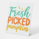 Genießen Sie die Wärme und Schönheit der Kürbissaison mit unserem Schild "Farm Fresh Pumpkins Pickted Daily". Dieses exquisite Kunstwerk erfasst das Wesen der Saison und ist damit die perfekte Ergänzung zu Ihrer Herbstkollektion in diesem Jahr.