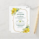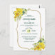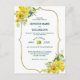 Diese hübsche und frisch frühlingshafte Blütenhochzeit-Einladung ist perfekt für eine Frühjahrs- oder eine Sommerhochzeit. Dieses einzigartige und elegante Design besticht durch helle Blume in Gelb mit blauen Beeren und botanischen Akzenten im Grünen. Ein goldener Rahmen umgibt die weiche gelbe Postkarte elegant. So süß und elegant für Ihre besondere Hochzeit mit Ihrer Familie und Freunden.