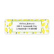 Dieses lustige Design zeichnet sich durch ein leuchtendes, frisches, aquarellfarbenes Zitronenmuster aus. Ihr Name und Ihre Adresse erscheinen in der modernen Typografie, zentriert auf einem weißen Quadrat, und ein Teil der Grenze von passendem Grün und Gelb ist die letzte Touch.