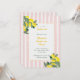 Celebrate a sweet milestone with this lemon-themed graduation invitation featuring soft pink stripes, fresh citrus illustrations, and elegant script typography. Perfect for spring and summer graduation parties, this design stands out among trendy citrus, pastel, and floral-inspired invites. Easily personalize with your event details for a stylish and cheerful graduation celebration. Original artwork by Caroline Bonne Muller.