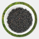 Frisch gepflückte, Bio schwarze Johannisbeeren wurden in einer großen, weißen Schüssel zusammengetragen.