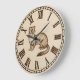 Holz Wanduhr mit fein graviertem Frettchen-Muster auf Naturholz.
