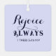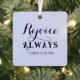 Dieses Ornament enthält Bibelverse über das Freuen zusammen mit dem anpassbaren Namen auf der Rückseite.