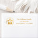Feiern Sie die wahre Bedeutung von Weihnachten mit diesem eleganten Gold Krippe Rückkehr-Adressetikett. Mit einer einfachen, von einem Lorbeerkranz gerahmten Silhouette und der Phrase "Joy to the World" fügt dieses Design Ihrer Urlaubspost eine vertrauensvolle Touch hinzu. Passen Sie Ihren Familiennamen und Ihre Adresse für Weihnachtskarten, Party Einladungen und Jahresbriefe an. Eine wunderschöne Wahl für religiöse Feiertagsbüros, Kirchenfamilien und alle, die klassische, sinnvolle Weihnachtsdesigns Lieben.