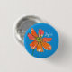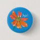Ein fröhliches Button mit einer knallroten, blauen Blume mit einer Biene, die mit Tinte gezeichnet und mit Aquarell auf einem königsblauen Hintergrund gemalt wird. Sie können den Text und die Hintergrundfarbe nach Ihren Wünschen ändern.