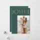 Moderne, minimale Urlaubsfotokarte mit einem großen Foto auf dunkelgrünem Hintergrund. Imitate Goldschrift liest Joyful in einem modernen Schriftart. Auf der Rückseite der Karte finden Sie einen zweiten persönlichen Gruß und Foto zusammen mit Ihren Namen.