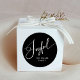 Diese eleganten, dunkelschwarzen Weihnachtsaufkleber sagen "Joyful" in der modernen weißen Skriptkalligraphie.