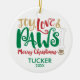 Diese Weihnachtsverzierung kennzeichnet den Ausdruck "Freude Liebe u. TATZEN" in der wunderlichen Roter, Grüner und Goldtypographie mit niedlichen kleinen Tatzendrucken und einem Knochen! Vervollkommnen Sie für Hundeliebhaber! Treten Sie mit uns in Verbindung, wenn Sie diesen Entwurf angewendet an einem spezifischen Produkt, um ein zusammenpassendes Einzelteil zu schaffen möchten. Danke soviel für das Betrachten eines DoodleLulu bis 2. Juni Wanzenentwurfs!