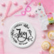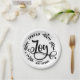 Eine sanfte Erinnerung, Freude zu verbreiten und während der Feriensaison die soziale Distanz zu wahren. Diese Teller im schwarz-weißen Bauernstil zeigen das Wort Joy in der schönen schwarzen Schrift Kalligraphie. Die Wörter, die sich ausbreiten und nicht Keime, sind in allen Kappen und sind gebogen, um an den äußeren Rand der Platte zu passen.