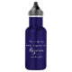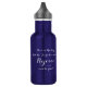 Aufhebend "Dies ist der Tag, den der Herr gemacht hat. Freuen Sie sich und seien Sie froh." Wasserflasche. Setzen Sie Segen in Ihre Zuhause und werden inspiriert und ermutigt jedes Mal, wenn Sie schauen und trinken aus ihr. Blaue Flasche mit weißem Skripttext.