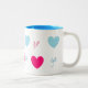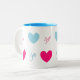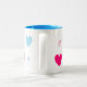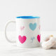 Zwei schöne Herzen mit Liebe und Freude. Die Herzen sind in magentafarbenen und hellblauen Farben.