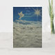 Die Weihnachtsgrußkarte, die einen Druck eines handgemalten Ölgemäldes eines Weiß zeigt, tauchte, ansteigend über Gebirgsspitzen und -nebel und unter einer glühenden Sonne.