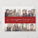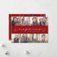 Eine moderne Skriptbotschaft der "Freude" wird von 8 Fotos auf festlichem rotem Hintergrund gerahmt. Diese Weihnachtskarte ist der perfekte Weg, um Freunden und Lieben Weihnachten zu schenken. Der Rücken ist ein festlich rotes karierte.