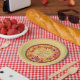 Diese inspirierende Herbst- und Erntedank-Papiertafel zeigt einen schönen, rustikalen Kranz in den Herbstfarben Gelb, Braun, Orange, Rosa und Rot, Blume, Blätter, Kastanien und Eichen. Der Kranz wird von einem orangefarbenen und einem braunen, dünnen Streifen für Akzente umgeben. In der Mitte steht die Typografie: "Lass uns Freude und gib Danke!" Das sind die perfekten Teller für einen Herbst oder Erntedank. Es gibt sowohl Dessert- als auch Dessertgrößen, und natürlich werden auch Papierservietten in unserem Shop verkauft, die diesen entsprechen.