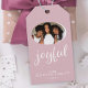 Joyful Modern Blush Pink Weihnachtsfeiertag Foto Geschenktag. Modernes Design mit einem ovalen Foto in Pastellrosa und Weiß und dem Wunsch nach Freude in trendiger Schrift. Fügen Sie Ihr Foto hinzu und passen Sie den Text auf der Vorder- und Rückseite an. Dieses Weihnachtsgeschenk-Tag wird Ihre Freunde und Familie bezaubern.