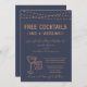 Kostenlose Cocktails (Und eine Hochzeit!) Funny Einladung für eine lustige Hochzeit. Das Toastwerk der Brillen Martini und Felsen wird handgezeichnet in Kupfer mit mariniertem Hintergrund.